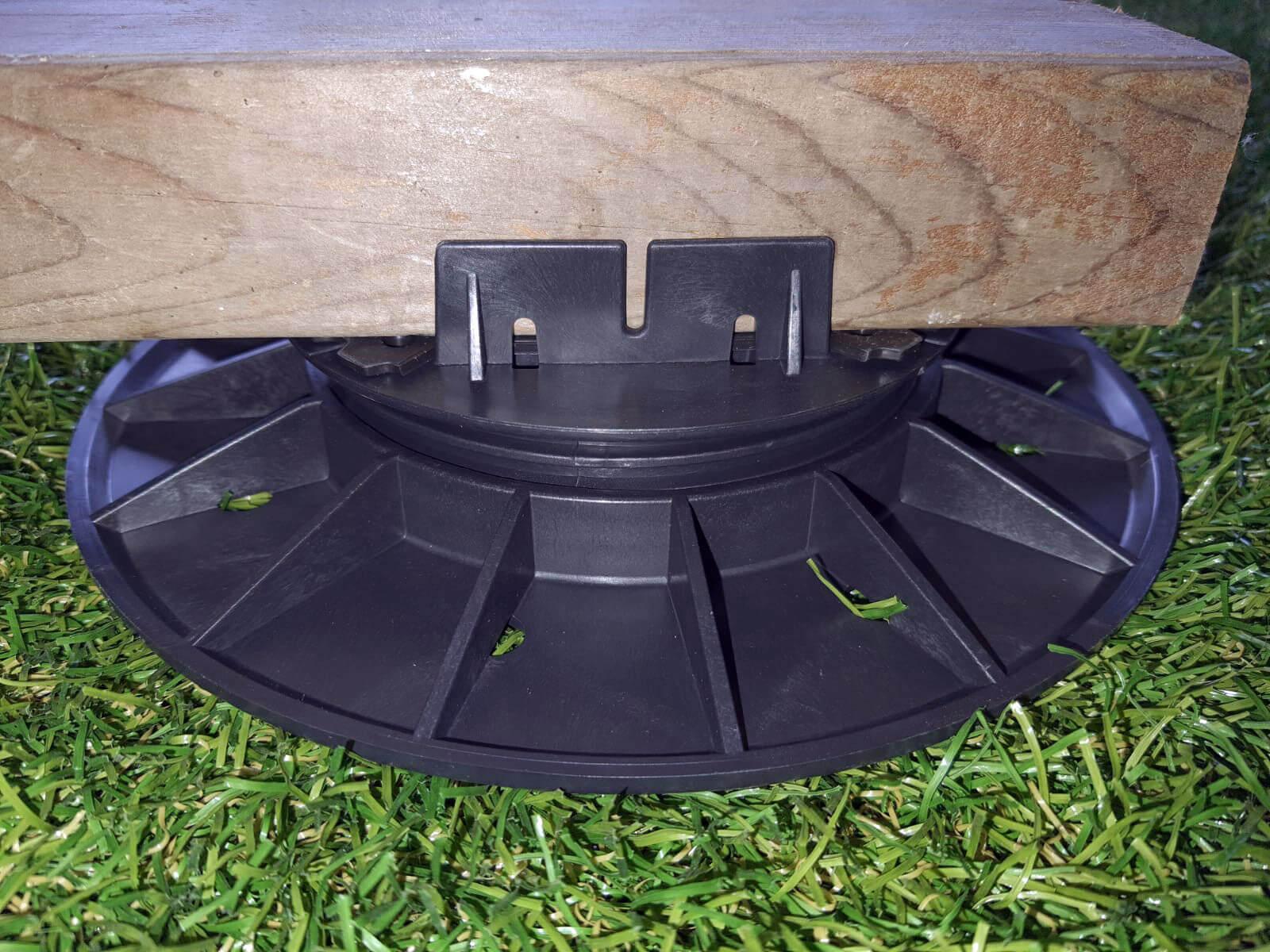 The very high load capabilty ensures these pedestals are suitable for use across a very wide range of levelling applications from patios, decks and roof gardens through to external buildings, log cabins, large hot tubs, surface pools and more. The pedestals are ideal for large decks with long joist spans (using 6" or 12" height joists), reducing the number of support points compared with other pedestal systems with lower weight carrying capacities.