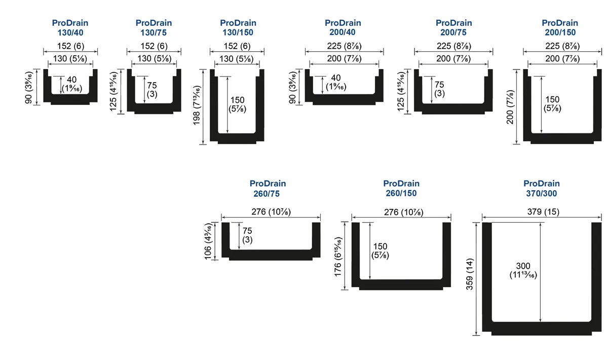 ProDrain range - technical information (sizes)