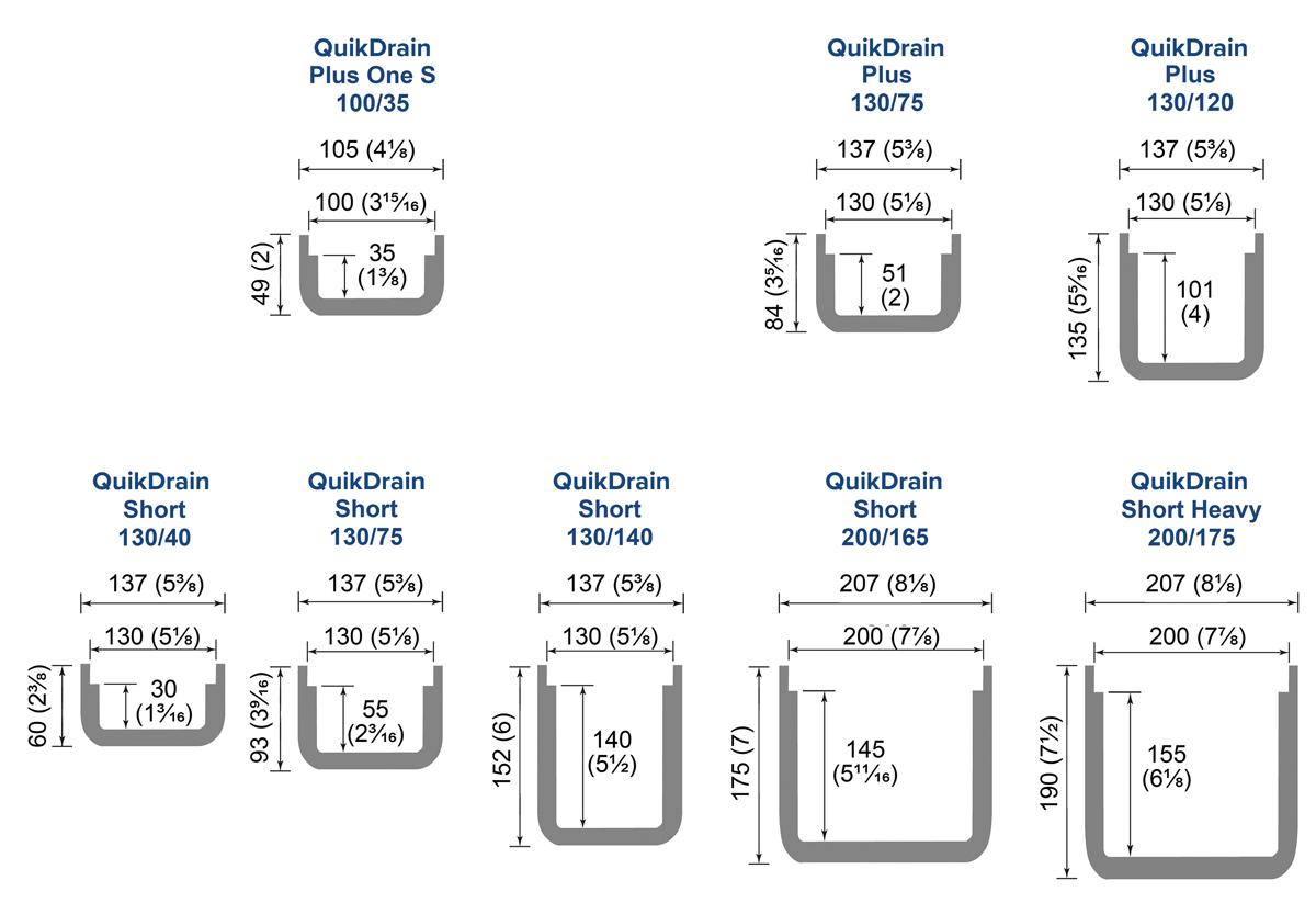 QuikDrain range - technical information (sizes)