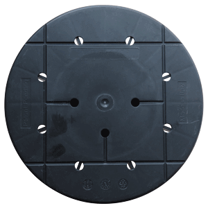 Extra large 210mm (8.25"), or 230mm (9”) base plates on the 60mm and larger pedestals, provide stable support on most surfaces. Scribe marks are provided on the underside to assist in trimming for use at sides and corners of installations. An optional square 230mm x 3mm thick anti-slip, cushioning, rubber base pad is available for use on membranes, etc. This effectively reduces transmitted noise where pavers are mounted on balconies or roof areas.